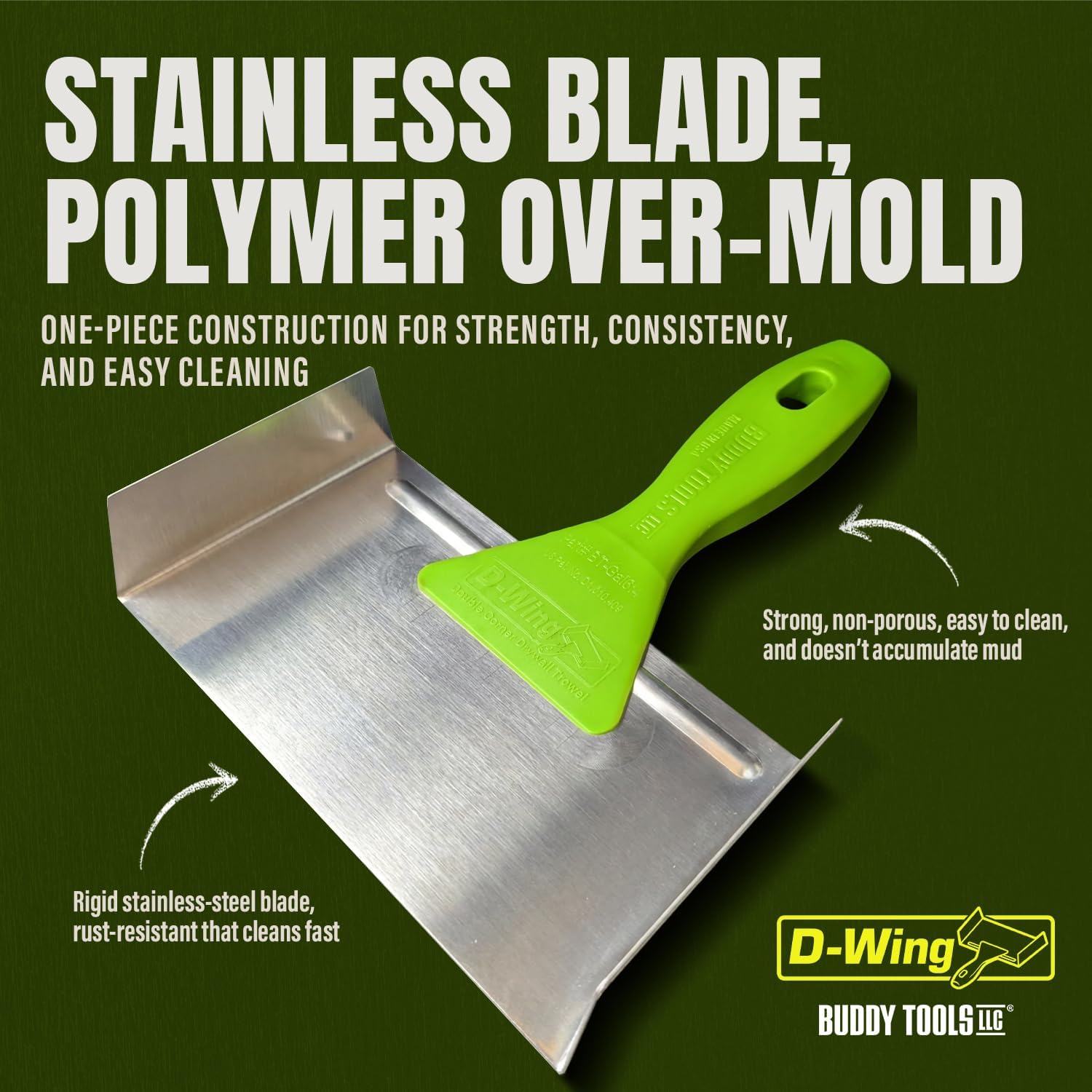 - DURABLE ONE-PIECE CONSTRUCTION: A rigid stainless-steel blade with a polymer over-mold creates a strong, rust resistant drywall trowel that cleans fast with no rivets or hardware to clog with compound